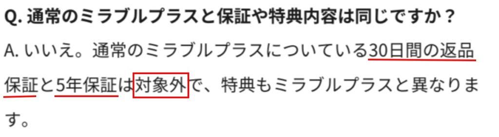 ミラブルzeroは保証がない?